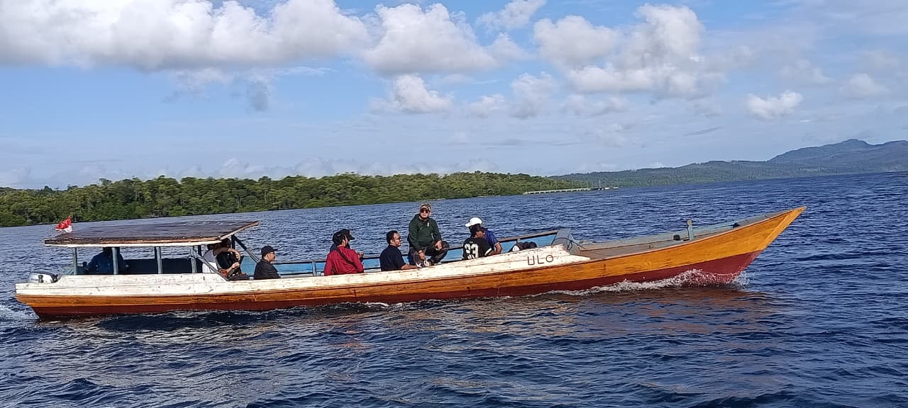“Objek pemeriksaan setempat berada di dalam kapal milik Penggugat, sehingga majelis menggunakan moda transportasi kapal berukuran kecil dari dermaga untuk sampai ke lokasi tersebut. Walaupun perjalanannya sangat panjang, namun pemandangan laut Halmahera sejenak mampu melepas lelah,” ungkap Pandu.