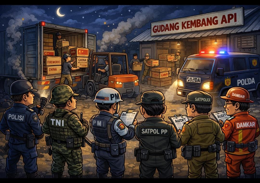 Perlu diketahui, aktivitas penyimpanan dan distribusi kembang api merupakan sektor berisiko tinggi, sehingga pengawasan ketat, kepatuhan regulasi, serta penerapan K3 secara menyeluruh menjadi keharusan mutlak.