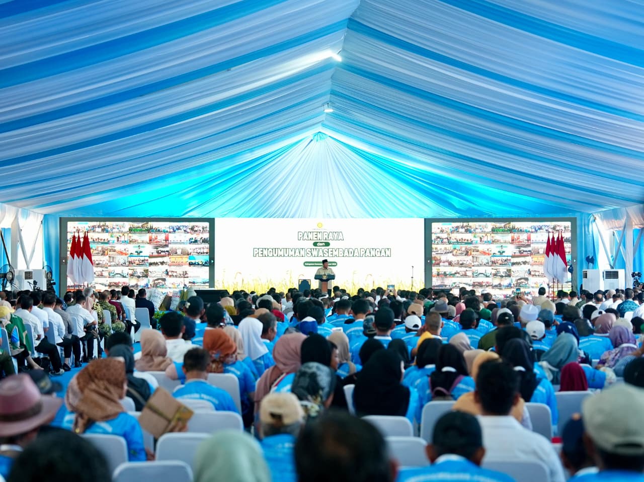 Dalam acara Panen Raya dan Pengumuman Swasembada Pangan tersebut, Prabowo turut didampingi sejumlah menteri dan pejabat negara, di antaranya Menteri Pertanian Andi Amran Sulaiman, Wakil Menteri Pertanian Sudaryono, Menteri Sekretaris Negara Prasetyo Hadi, Menteri Koordinator Bidang Pangan Zulkifli Hasan, Menteri Kelautan dan Perikanan Sakti Wahyu Trenggono, serta Sekretaris Kabinet Teddy Indra Wijaya.