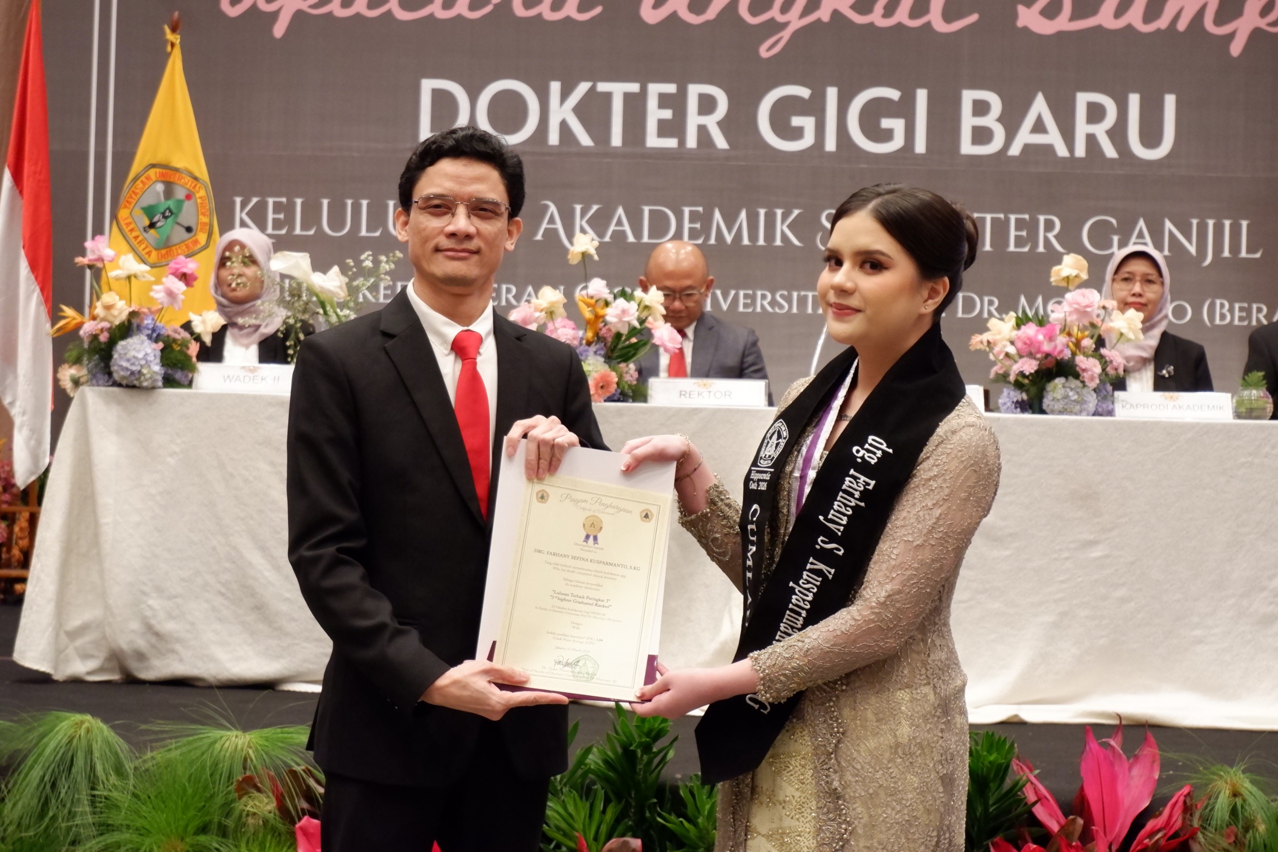 Dalam prosesi sumpah kali ini, salah satu lulusan yang turut menjadi sorotan adalah drg. Farhany Sefina, yang diketahui merupakan cicit dari pendiri Universitas Moestopo.