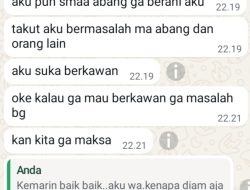 “Mksd abang apa sbnr nya, itu yg abang bilang ke dinas. udah ku perbaiki. Kalau abang ada hal lain jumpa, mana ada yg susah2 bg. Aku pun smaa abang ga berani aku, takut aku bermasalah ma abang dan orang lain. Aku suka berkawan, oke kalau ga mau berkawan ga masalah bg. Kan kita ga maksa, kapan abang wa aku?.