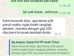 Menurutnya bang “ampon” pejabat utama di kantor sat pol pp dan w.h aceh timur tersebut, langsung di respon dan di balas oleh. Apa yang telah dia terima melalui chat whatsapp selularnya, yang di sampaikan oleh wartawan media ini. “Kami kroscek dulu..apa benar PPPK paruh waktu ngak boleh rangkap jabatan..mereka dengan gaji 200 ribu, kami kroscek kembali dinda”. Ujarnya, bang “ampon” kepada wartawan media online ini secara singkat. Sekitar pukul.22.13.wib