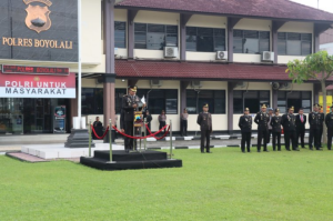 Upacara yang berlangsung di halaman Mapolres Boyolali sejak pukul 07.45 WIB tersebut dipimpin langsung oleh Kapolres Boyolali AKBP Rosyid Hartanto selaku Inspektur Upacara. Hadir dalam kegiatan tersebut jajaran pejabat utama, perwira staf, personel Polres Boyolali, serta PNS Polri. Seluruh rangkaian upacara berlangsung tertib dan khidmat, namun sarat pesan strategis bagi keberlangsungan negara.