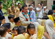 Meski terlihat lelah setelah perjalanan panjang, Prabowo tetap menyempatkan diri menyapa satu per satu warga yang hadir.