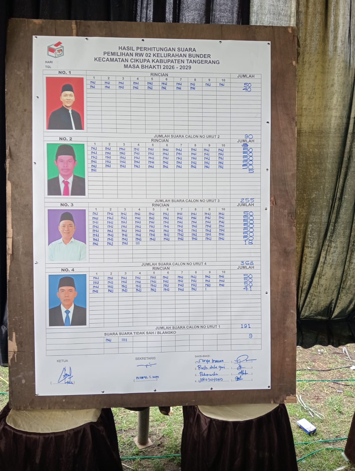 Akhmad Sopyan bin H. Arsid (No. Urut 3) unggul dengan 368 suara Ketua RW 02 Kelurahan Bunder Masa Bakti 2026 – 2029.