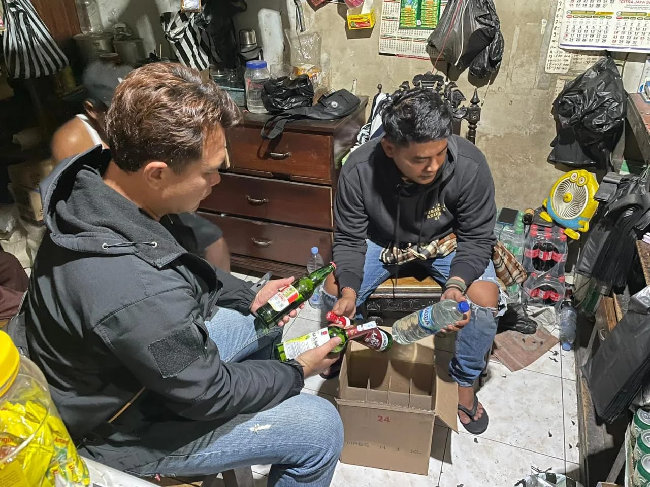 Dia mengatakan penggerebekan dilakukan setelah Polisi menerima laporan dari masyarakat yang resah dari miras. Kemudian Polisi melakukan penyelidikan dan pengintaian di lokasi. Setelah dilakukan penyelidikan Polisi melakukan penggerebekan dan mendapatkan sejumlah barang bukti. Di antaranya berupa tujuh botol air mineral ukuran besar berisi ciu, tiga botol nerek Draft Beer, dua botol minuman beralkohol merek Kkawa-Kawa, dan dua botol Singaraja.