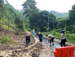 Material longsor berupa tanah, bebatuan, serta pohon tumbang sempat menutup badan jalan dan mengganggu kelancaran arus lalu lintas. Dengan menggunakan peralatan seadanya, personel Polsek Pemenang bergerak cepat melakukan pembersihan sebagai langkah tanggap darurat untuk membuka kembali akses jalan yang tertutup.