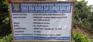 Detektifinvestigasi.com | Kabupaten Tangerang — Proyek Normalisasi Saluran Pembuangan Citakim yang tengah dilaksanakan oleh Dinas Bina Marga dan Sumber Daya Air (DBMSDA) Kabupaten Tangerang menuai sorotan. Meski baru berjalan sekitar satu bulan, indikasi ketidaksesuaian administrasi sudah tampak dari informasi yang terpampang di papan proyek.