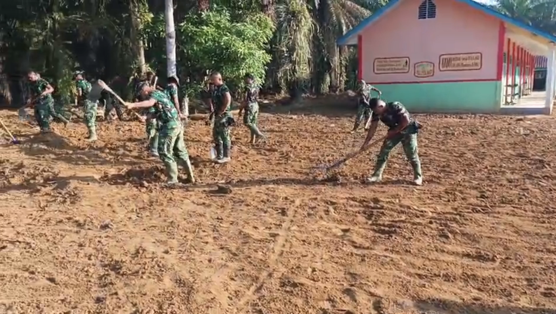 Detektif-Investigasigwi.com. Tapanuli Tengah — Belasan sekolah terdampak bencana di Sumatra Utara (Sumut) berangsur dibersihkan anggota TNI Angkatan Darat. Sebagian besar sudah rampung dan siap digunakan. Beberapa di antaranya masih dalam progres pembersihan dan revitalisasi.