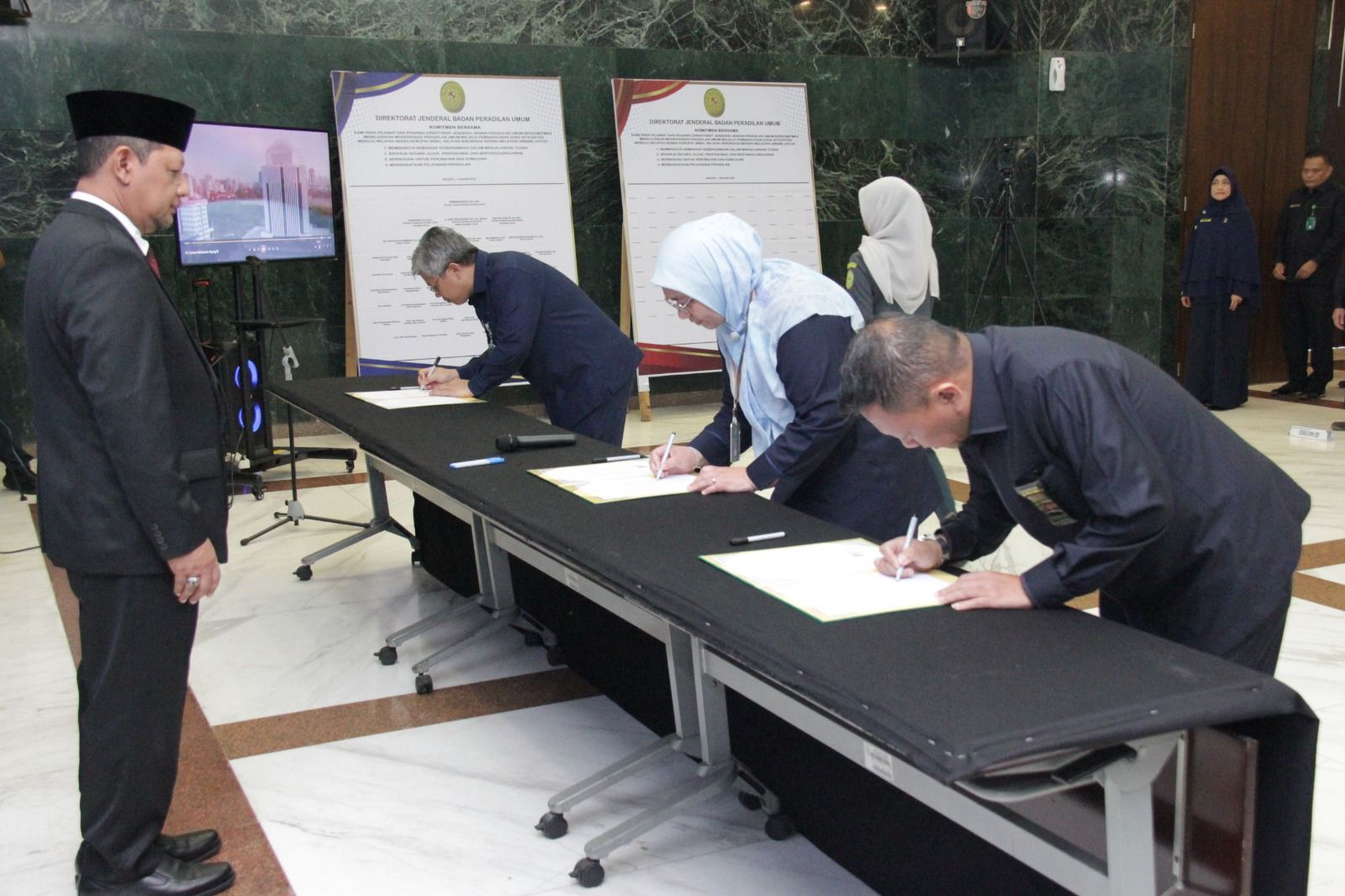 Selain penandatanganan Pakta Integritas, seluruh pejabat dan pegawai Ditjen Badilum juga secara bersama-sama membacakan Komitmen Bersama, yang berisi tekad untuk memberikan pelayanan terbaik kepada masyarakat, menjaga integritas pribadi dan institusi, serta menolak segala bentuk gratifikasi dan praktik penyuapan.