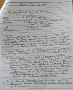 Tentang merekayasa bantuan sosial kepada warga, 2. Saya di fitnah oleh penjabat (pj) geuchik (nazarudin alias aca), dalam bentuk merekayasa cerita. Bahwa sanya, saya di tuduh menjanjikan bantuan kepada warga, apa bila warga tersebut (wanita). Mau melakukan hubungan badan kepada saya, maka saya akan memberikan bantuan bantuan tersebut. Dan ucapan itu, langsung saya dengar dari pengakuan pj geuchik saya. Di depan pak camat, yang di sebut-sebut sapaan panggilan (reza ardiansyah) serta ketua tuha peut dan wakilnya dan beberapa anggota lainnya. 3, pj geuchik meurandeh aceh. Mencoba melakukan provokasi bersama keluarganya, untuk menjatuhkan saya. Untuk selanjutnya, pernyataan itu yang di perbuat oleh berinsial “M.S” perangkat desa meurandeh aceh. Dan di tanda tangani menggunakan materai Rp.10.000,- berlambangkan burung garuda indonesia. Langsa, 27/12/2025.