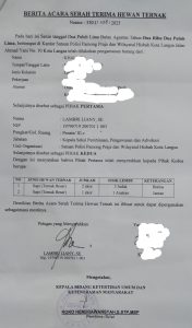 Pada surat yang ke dua (2), berbunyi. Yaitu : Berita acara serah terima hewan, dengan nomor surat : 330.1/108/2025. Masing-masing disebut-sebut sapaan panggilan sebagai pihak pertama selalu pemilik ternak lembu “khalidin”, bersama pihak kedua. Selaku petugas sat-pol-pp pemko langsa, yang disebut-sebut sapaan panggilan “lambri liany se” di tanda tangani masing-masing dan bercap stempel basah. 1, lambri liany se. Sebagai petugas yang menyerahkan, mengetahui oleh kepala bidang ketertiban umum dan ketentraman masyarakat. Yang di sebut-sebut sapaan panggilan “Koko Hendra Wansyah s stp msp”, pembina (IV/a).
