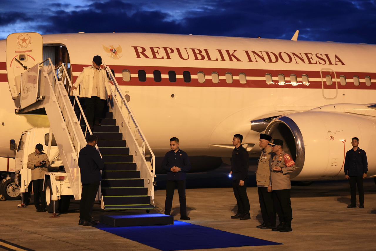 Sebelumnya, Prabowo lepas landas dari Lanud Halim Perdana Kusuma Jakarta pada pukul 17:00 wib dan didampingi oleh Menteri Sekretaris Negara Prasetyo Hadi dan Sekretaris Kabinet Teddy Indra Wijaya.